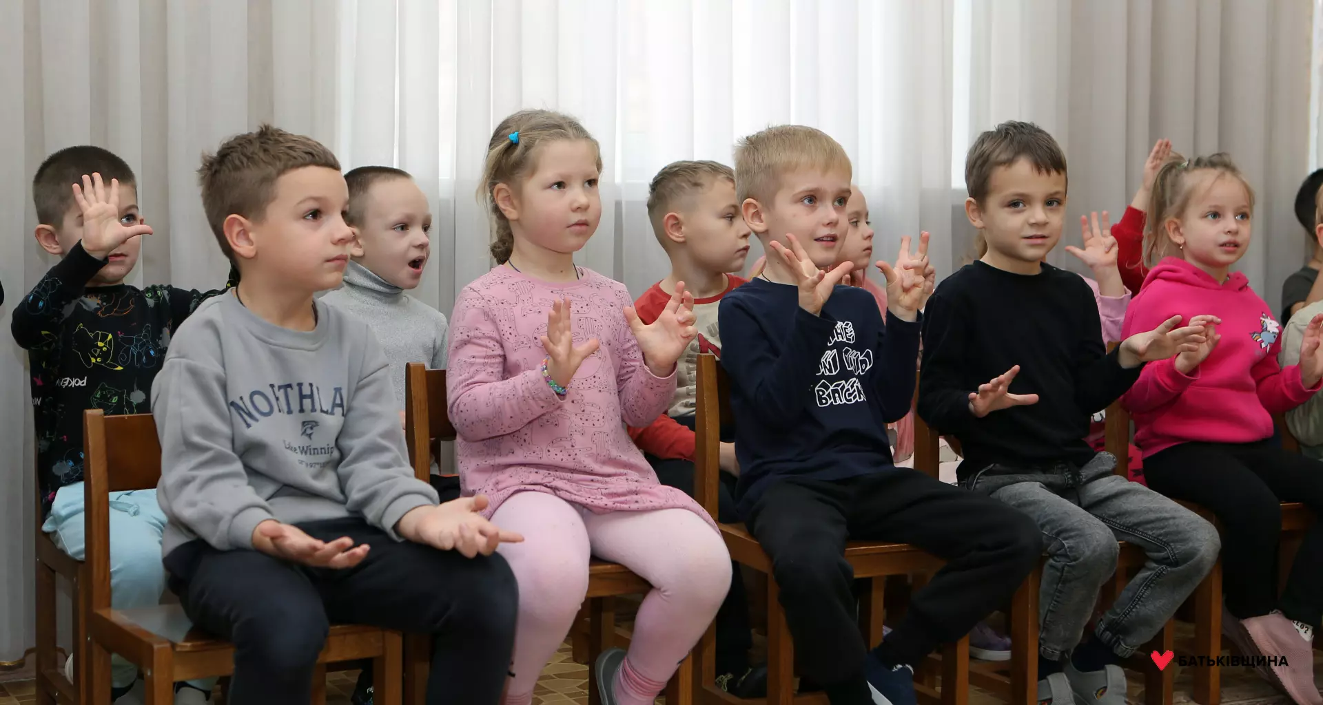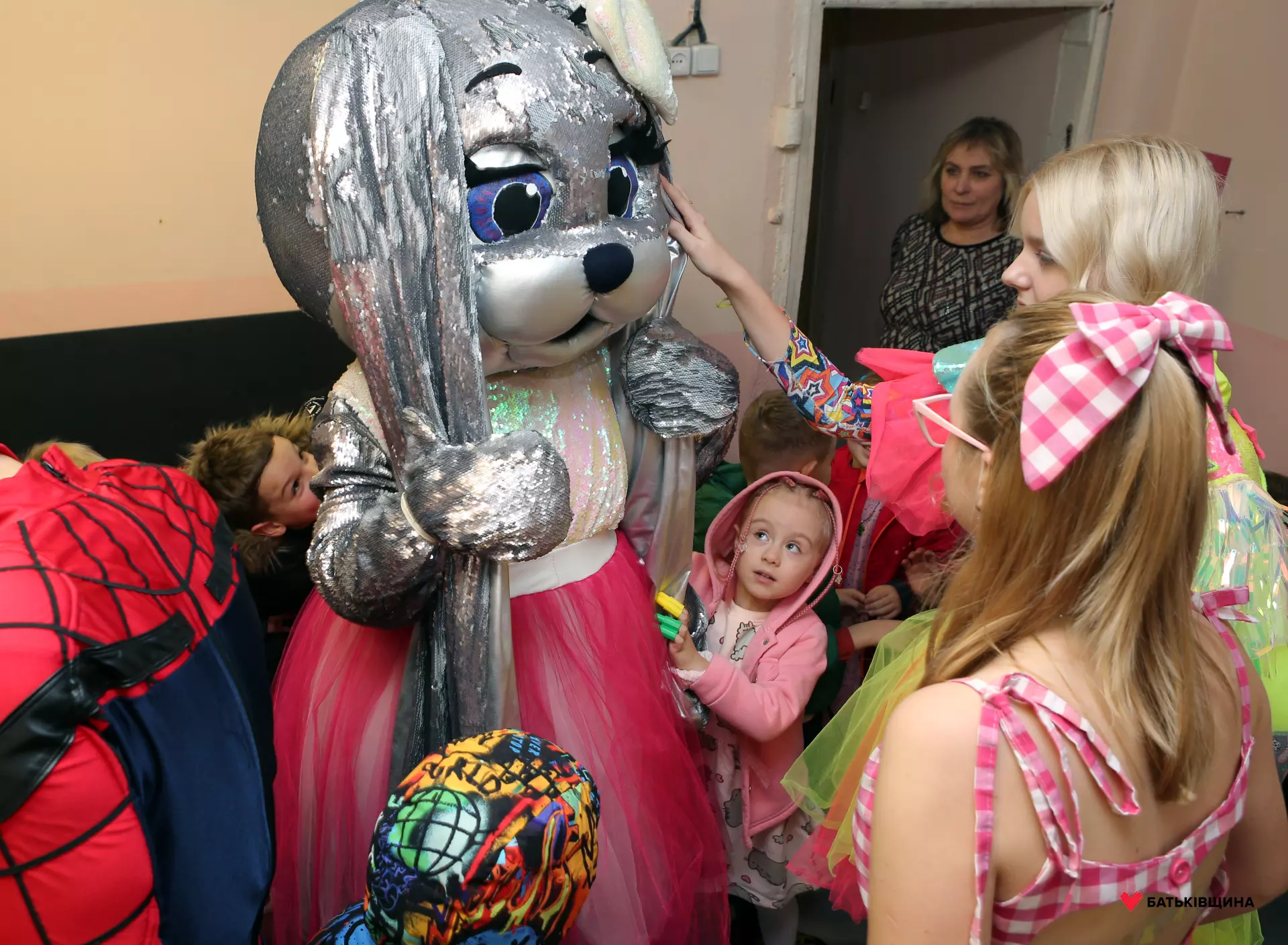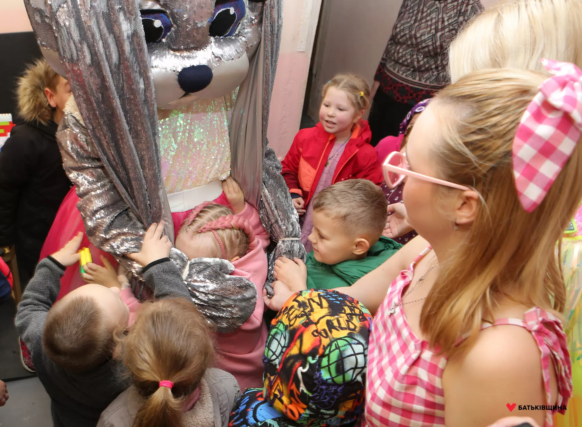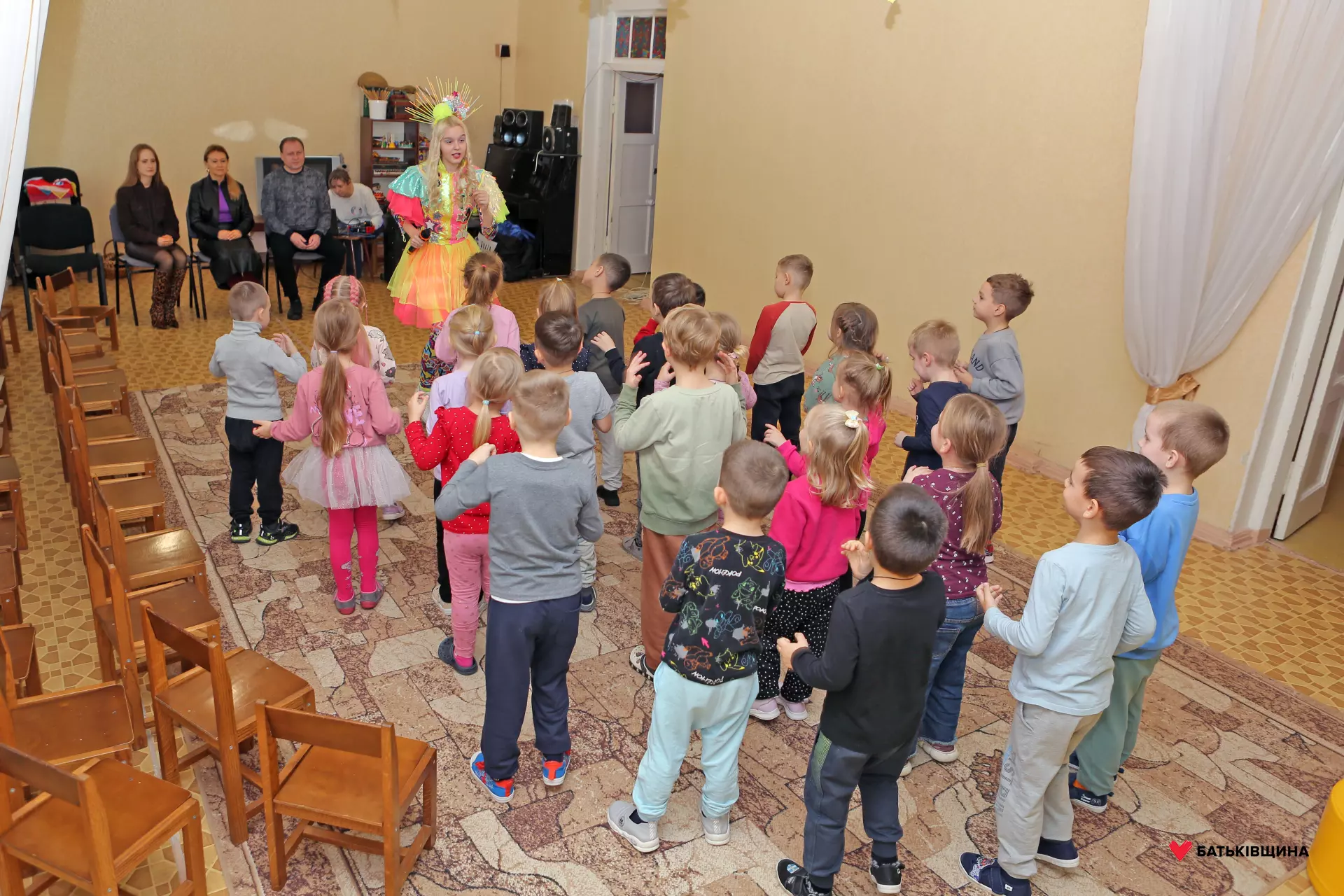 Аніматори у яскравих костюмах одразу заволоділи увагою дітей — малюки із захопленням повторювали рухи, брали участь у змаганнях, танцювали та раділи кожному моменту взаємодії