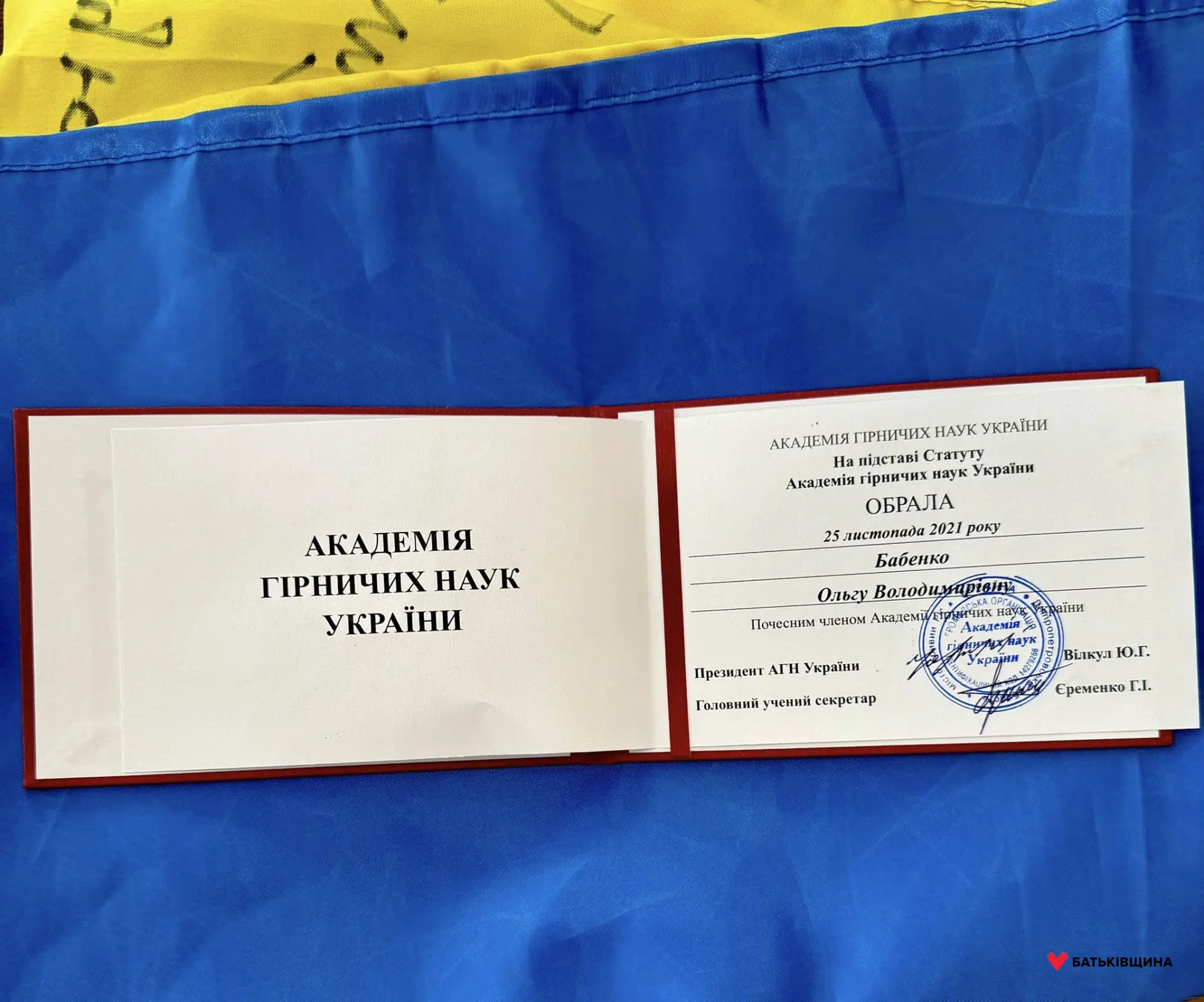 Щиро вітаємо, Ольгу Бабенко - голову Криворізької міської організації ВО "Батьківщина", з отриманням почесного звання та врученням диплому Почесного члена Академія гірничих наук України!