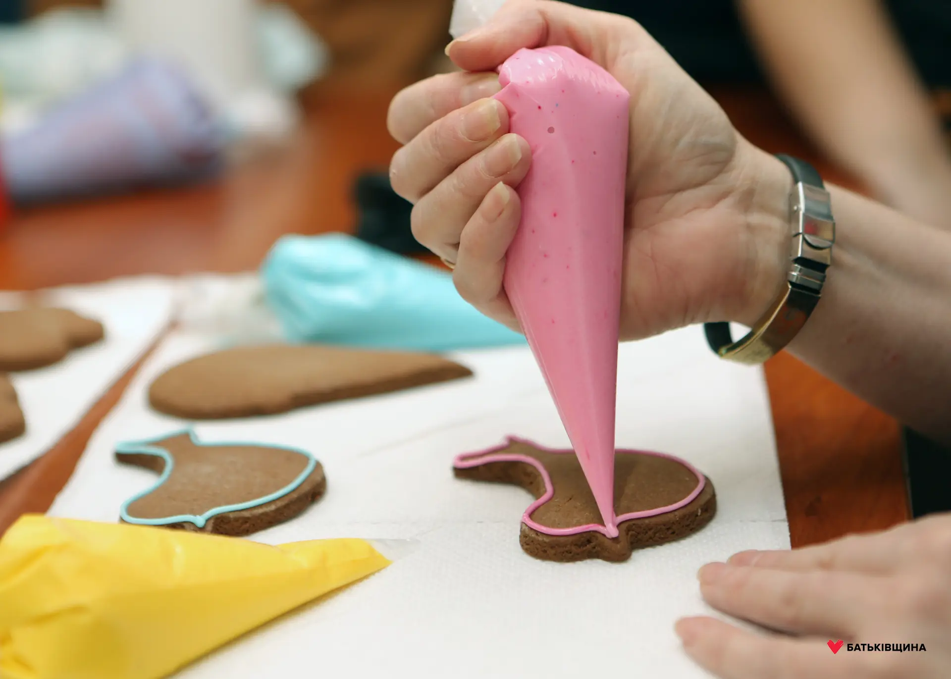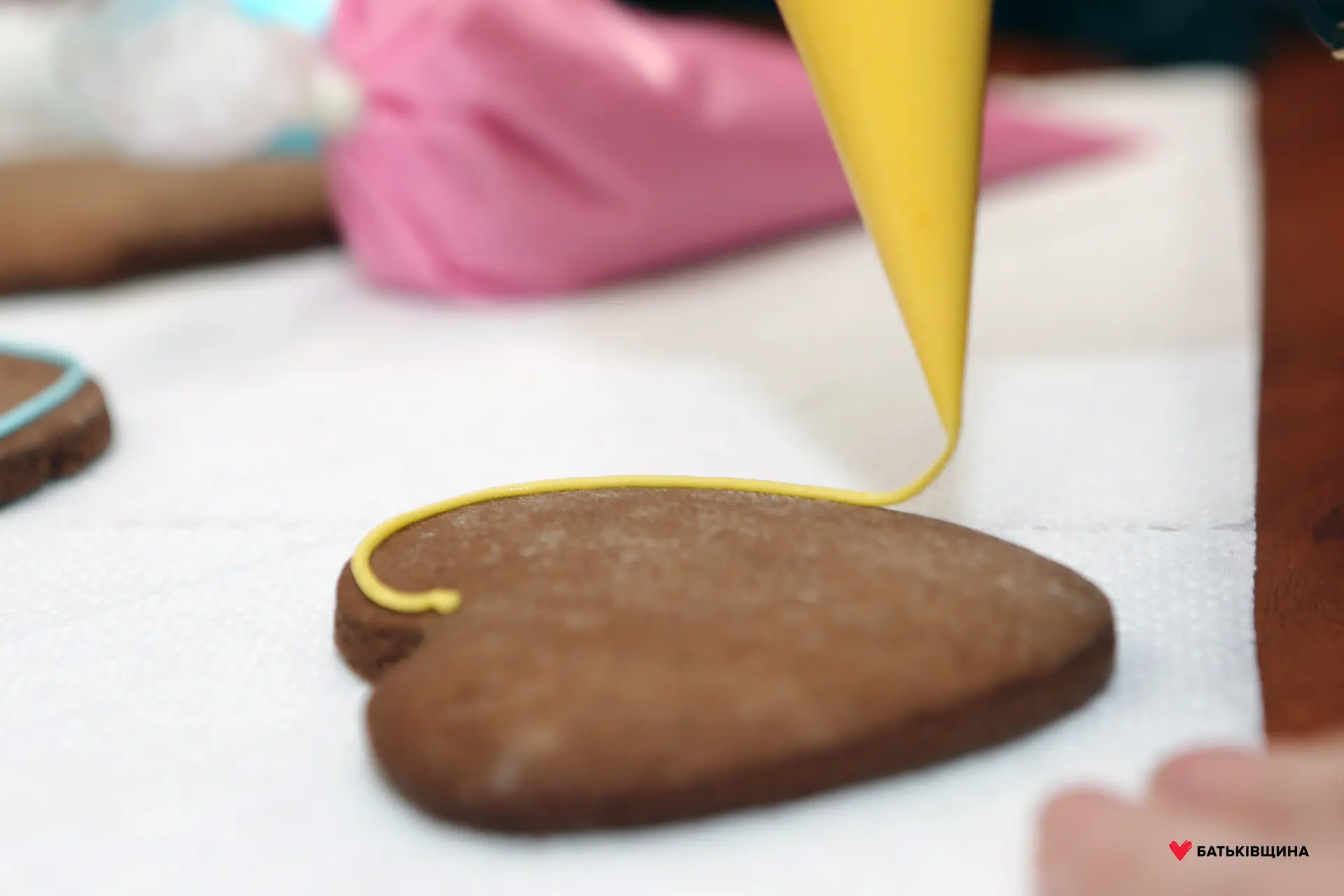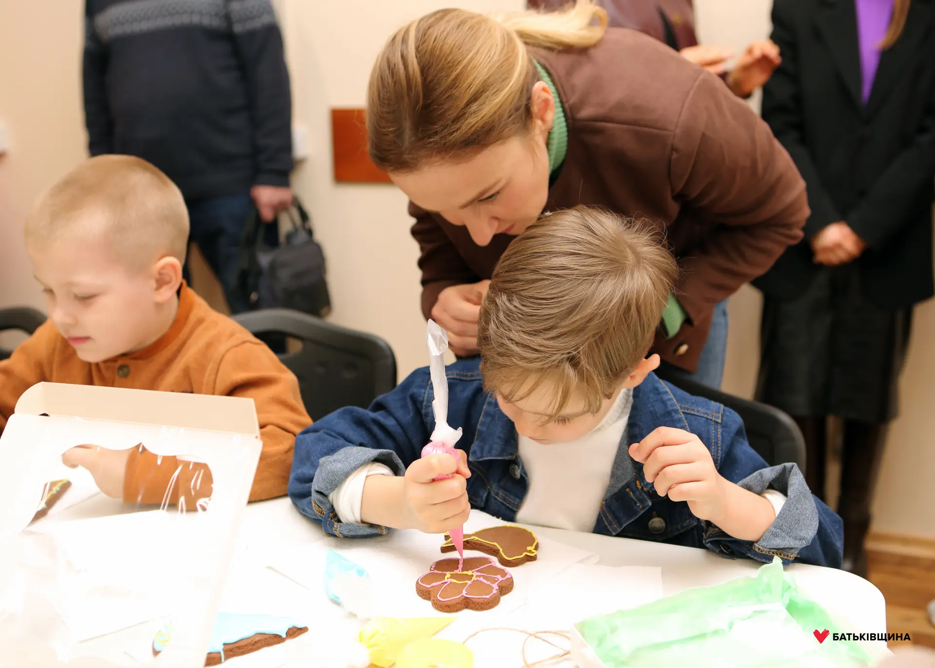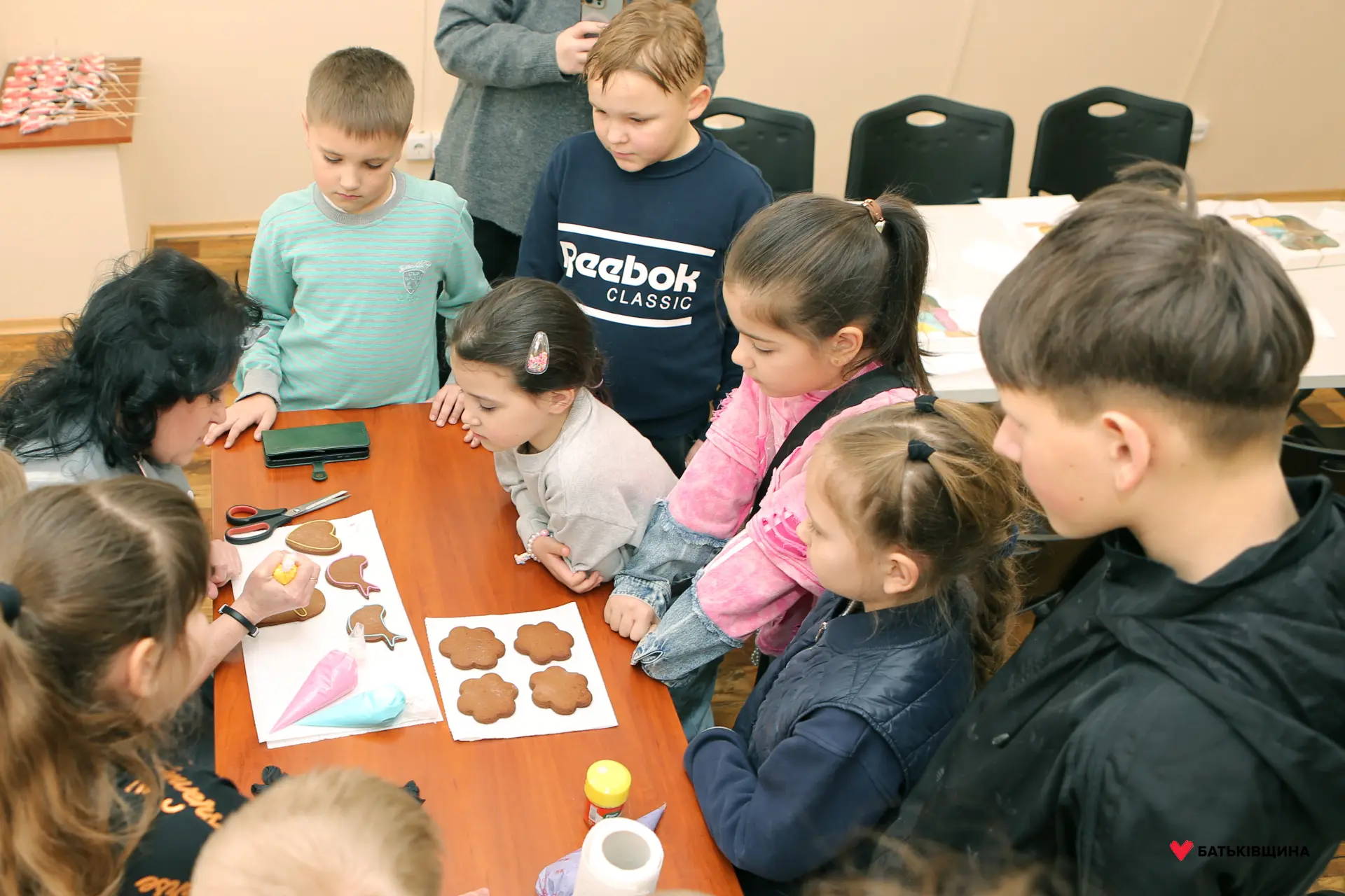 Разом із дітьми всі присутні дізналися, як правильно використовувати глазур при оформленні імбирного пряника, а також змогли власноруч створити солодкі шедеври.