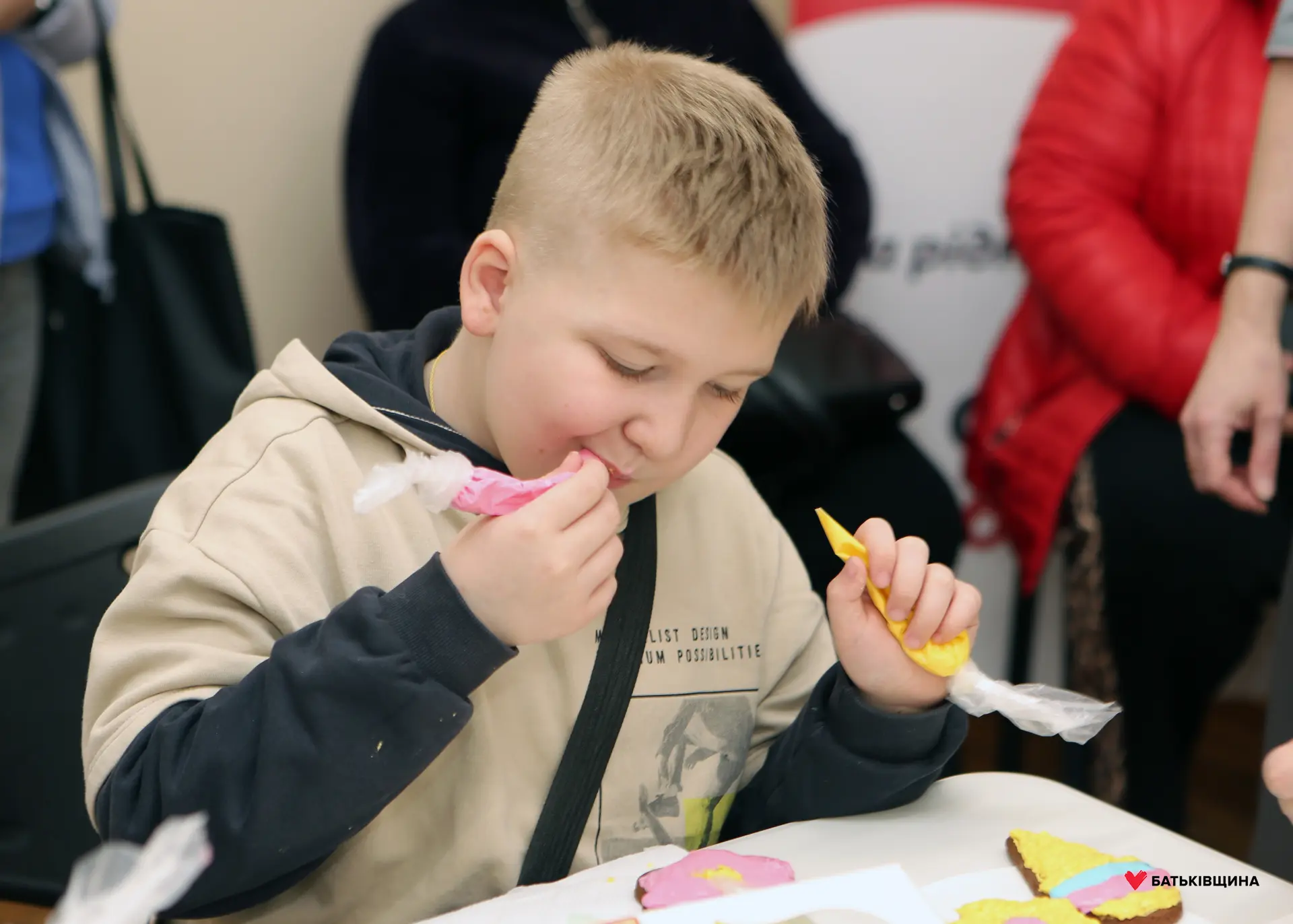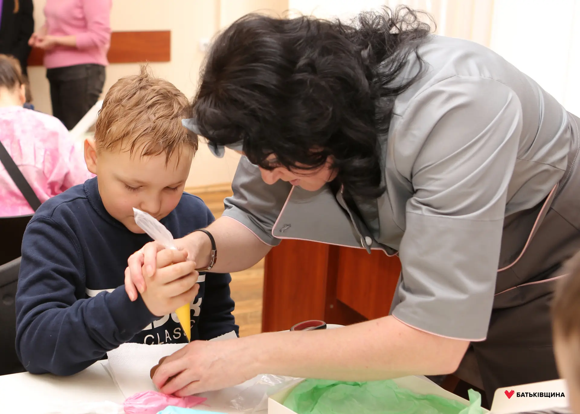 Сьогодні для дітей пільгових категорій нашого міста Ольга Бабенко, голова Криворізької міської організації ВО «Батьківщина», та депутат Дніпропетровської обласної ради Марія Бабенко організували яскравий тематичний майстер-клас, який провела Наталія Бугайова — власниця домашньої кондитерської «Сьоме небо».